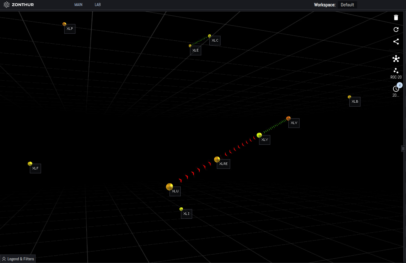 Causal networks map how assets (e.g., stocks, bonds, gold) directly influence each other’s price movements. Unlike traditional models, they identify cause-and-effect relationships, revealing which assets drive changes in others and how these dynamics evolve over time. At Zonthur, our causal network analytics use advanced algorithms to detect these directional relationships with high accuracy.